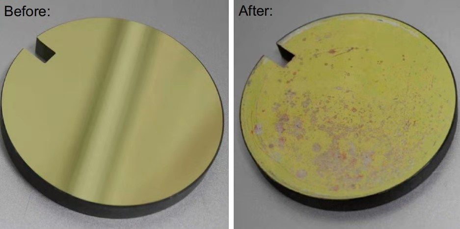 圖3 采用多次反射長光程吸收池的光學(xué)鏡片在脫硝工況運行下受腐蝕情況