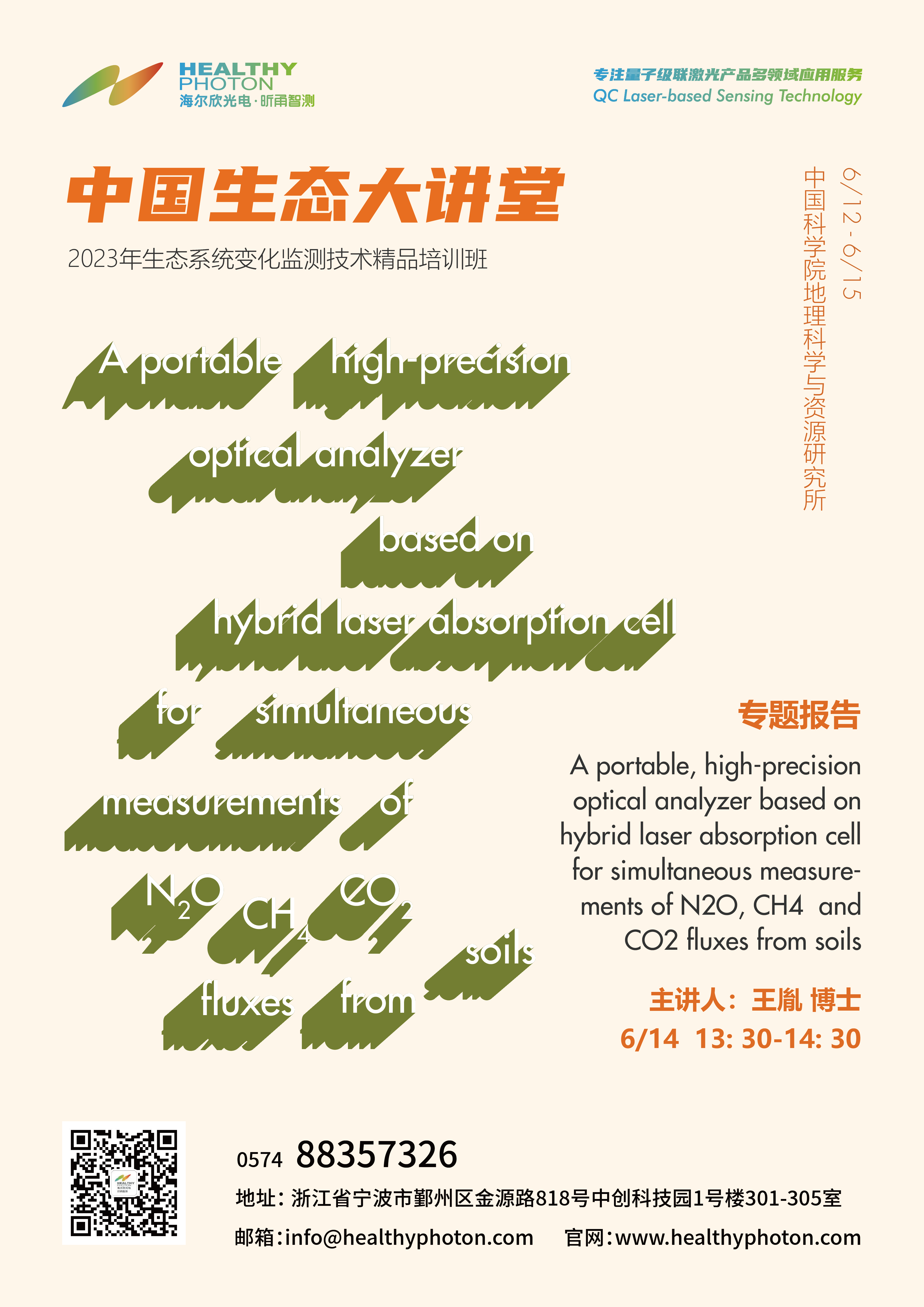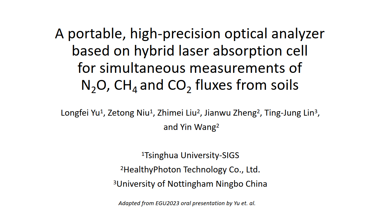 其中,寧波海爾欣光電科技有限公司受邀參加專題研討。總經理王胤博士將針對公司品牌“昕甬智測”HT8800系列便攜式高精度溫室氣體分析儀,分享題為A portable, high-precision optical analyzer based on hybrid laser absorption cell for simultaneous measurements of N2O, CH4 and CO2 fluxes from soils(基于混合激光吸收池的便攜式高精度光學分析儀,可同時測量土壤中的N2O、CH4和CO2通量)的案例應用與相關成果。該項目由清華大學深圳國際研究生院、寧波海爾欣光電科技有限公司、寧波諾丁漢大學聯(lián)合研究。相關成果也在EGU2023中進行口頭論述。