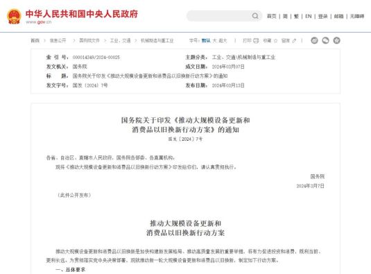 在黨中央、國(guó)務(wù)院的指導(dǎo)下,國(guó)家發(fā)展改革委牽頭21家部門和單位,建立了推動(dòng)大規(guī)模設(shè)備更新和消費(fèi)品以舊換新的部際聯(lián)席會(huì)議制度。目前,相關(guān)政策體系已經(jīng)構(gòu)建完成,涵蓋設(shè)備更新、消費(fèi)品以舊換新、循環(huán)利用和標(biāo)準(zhǔn)提升等方面的行動(dòng)方案已全部出臺(tái)。這為企業(yè)提供了明確的技術(shù)規(guī)范,助力產(chǎn)品質(zhì)量和市場(chǎng)競(jìng)爭(zhēng)力的提升。