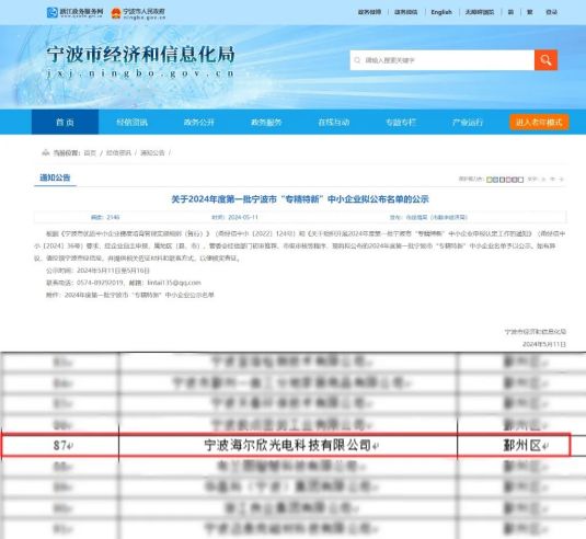 憑借海爾欣·昕甬智測(cè)卓越的技術(shù)創(chuàng)新能力,成功入庫(kù)2024年第一批寧波市"專精特新"中小企業(yè)名單、2024年度第一批區(qū)級(jí)企業(yè)技術(shù)研發(fā)中心名單。
