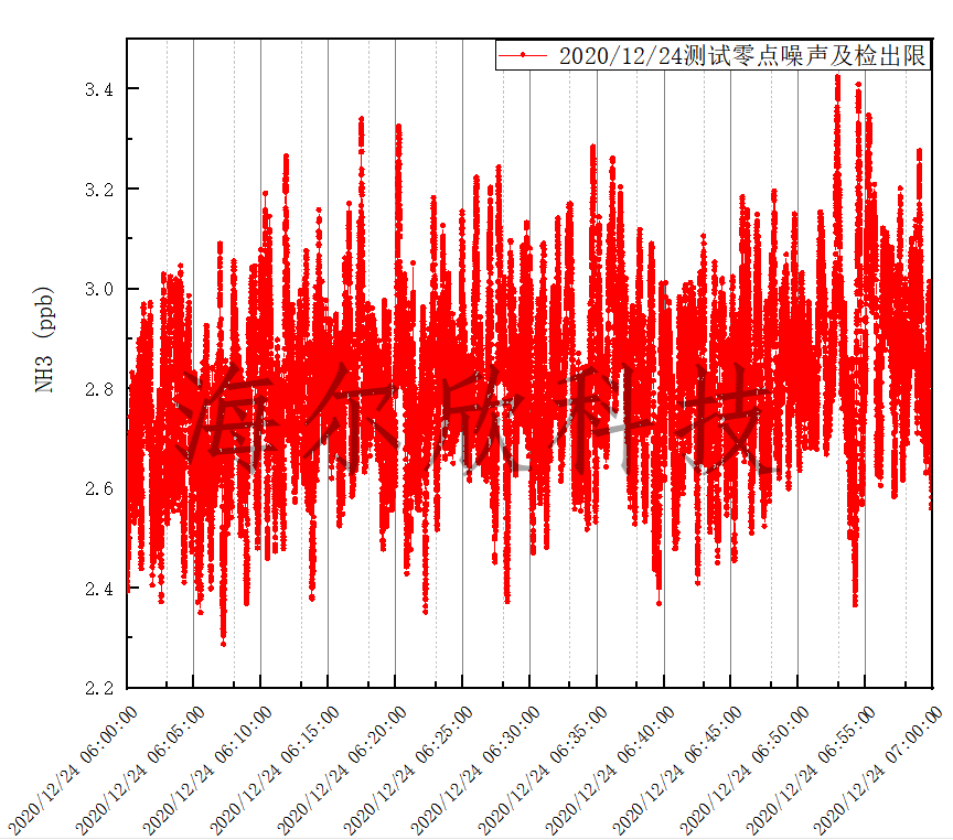 根據(jù)HJ654-2013 中零點(diǎn)噪聲及最低檢出限的測(cè)試方法測(cè)試零點(diǎn)噪聲及檢出限。