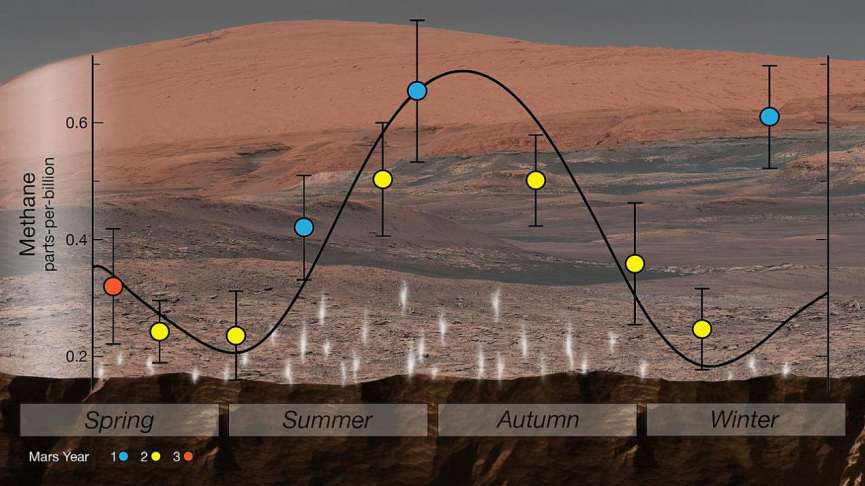圖4. 火星大氣中的甲烷的周期變化,圖片來源于維基百科