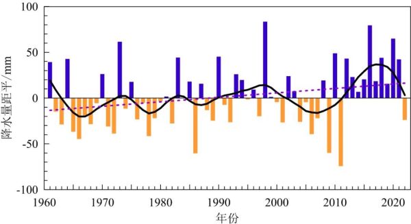 中國平均年降水量呈增加趨勢,極端強降水量事件增多。1961~2022年,中國平均年降水量呈增加趨勢,平均每10年增加0.8%。降水變化區(qū)域差異明顯,青藏地區(qū)平均年降水量呈顯著增多趨勢,平均每10年增加9.4 mm;西南地區(qū)平均年降水量總體呈減少趨勢,平均每10年減少9.6 mm。1961~2022年,中國極端日降水量事件頻次呈增加趨勢,平均每10年增多18站日;中國年累計暴雨(日降水量≥50 mm)站日數呈增加趨勢,平均每10年增加4.2%。