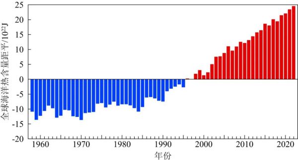 1958~2022年全球海洋熱含量(上層2000米)距平變化