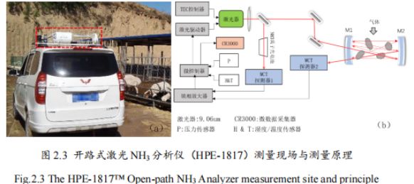 該項目使用了開路式激光NH3分析儀(HT8700)用于養(yǎng)殖場NH3 濃度的在線測量。該分析儀采用車輛移動平臺搭載形式(圖2.3a),它包括Healthy Photon HT8700大氣氨激光開路分析儀、 數(shù)據(jù)采集模塊、GPS 模塊、超聲波三維風速儀模塊和實時數(shù)據(jù)處理模塊等(圖2.3b)